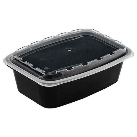 Контейнер одноразовый 1000 мл, С КРЫШКОЙ, 211х146 мм, черный/прозрачный, ПП, ВЗЛП, 1266Ч