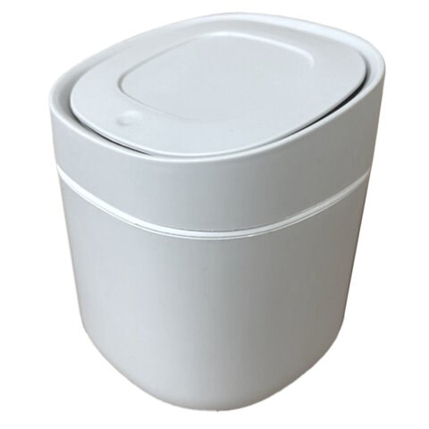 Изготовлена из высококачественного пластика белого цвета. Оснащена крышкой с механизмом вращения. Легкость и компактность корзины позволяют перемещать ее с одного места на другое. Небольшая корзина легко помещается на рабочем столом. Имеет размеры 15,5 х 13,5 см и объем 2,8 л.