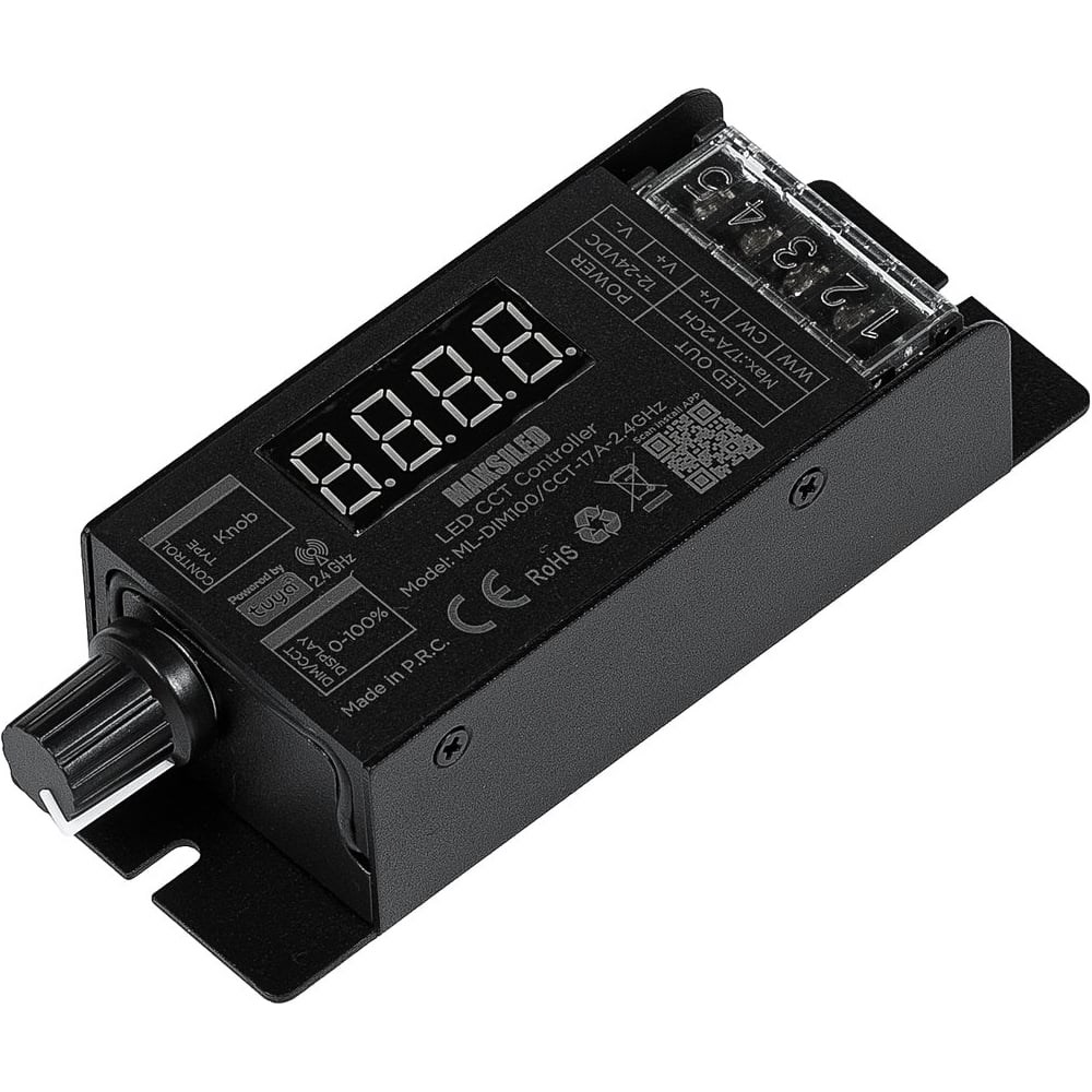 Контроллер (диммер) для DIM/CCT светодиодных лент. Питание/рабочее напряжение 12-24 В, максимальный ток 17 A, 2 канала, максимальная мощность 200-400 Вт. Материал корпуса - Пластик. Габариты 103х40х24 мм. Работает с приложением Tuya/Smart Life (Android/iOS).