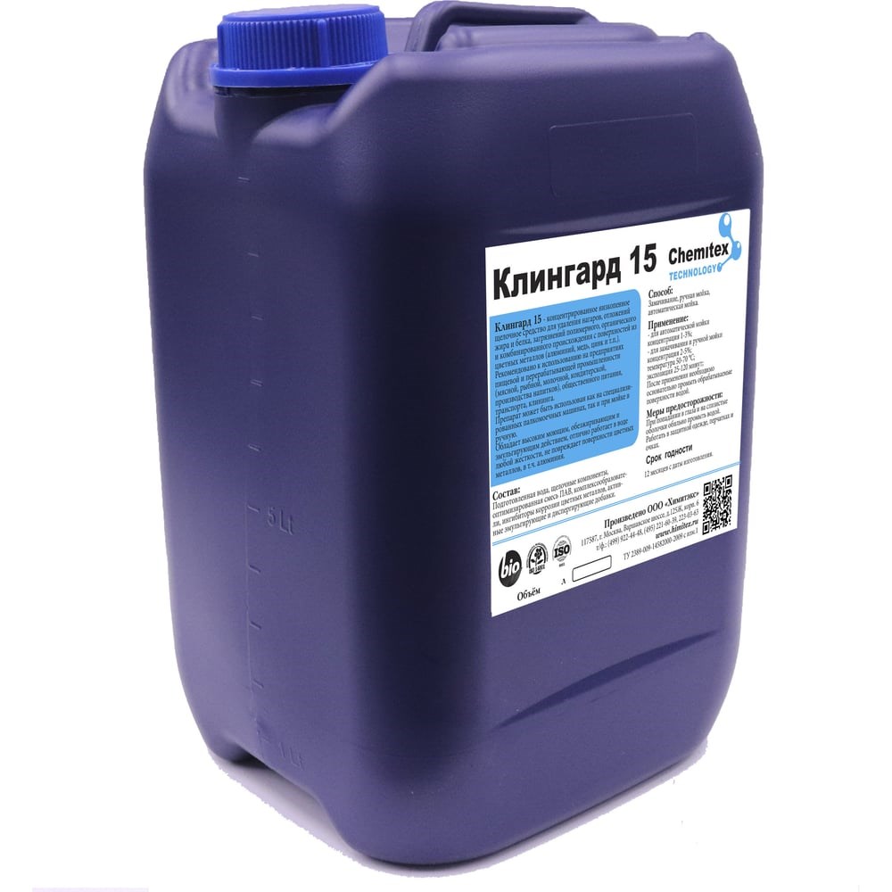 Концентрированное беспенное моющее средство для цветных металлов и термического оборудования ХИМИТЭКС КЛингард-15