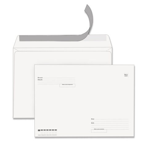 В конверт формата C4 можно вложить документ формата А4. На передней стороне конверта имеются адресные указатели: "Куда", "Кому", "От кого", "Откуда". Плотность бумаги 100 г/м2 позволяет размещать тяжелую корреспонденцию и скрыть содержимое от посторонних глаз. Отрывная полоса типа STRIP обеспечивает надежное запечатывание конверта и сохранность личного письма или важного документа.