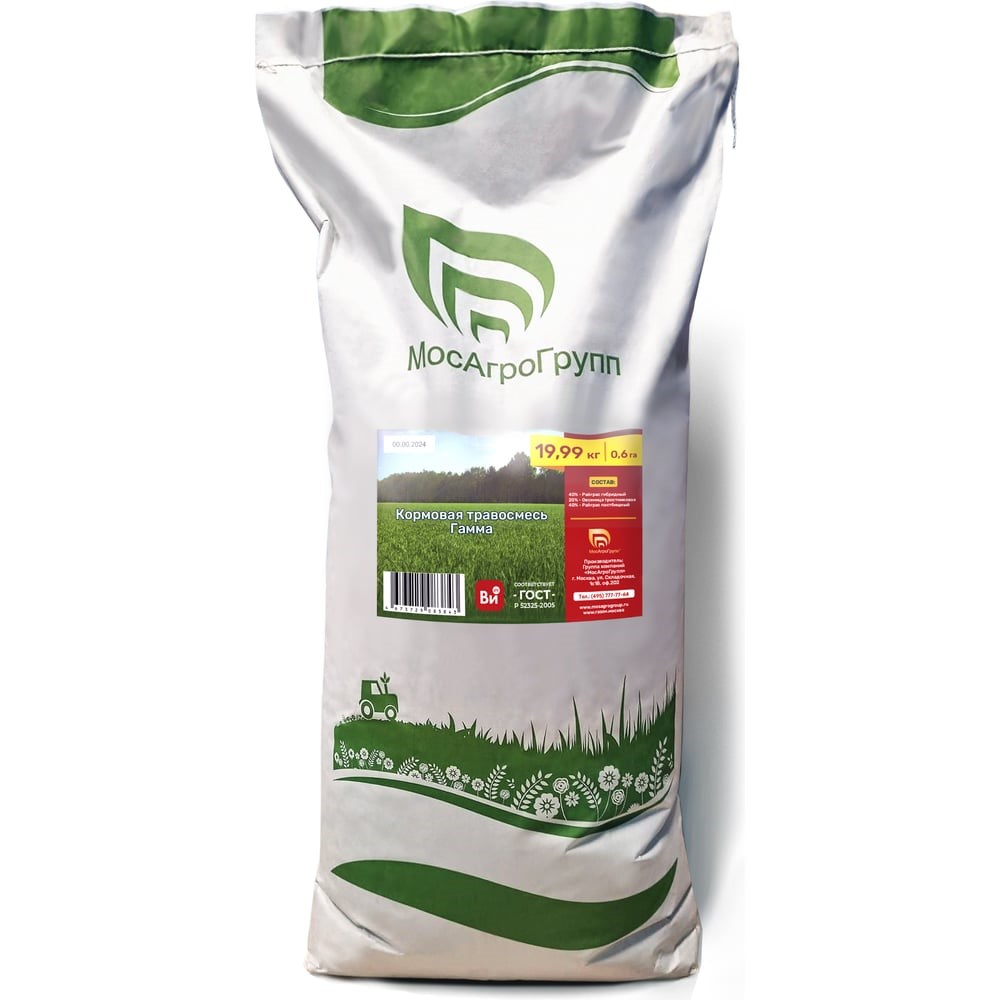 Кормовая травосмесь МосАгроГрупп гамма 19.99 кг МАВИК200017 подходит для выращивания на пастбищах. Кормовая травосмесь «Гамма» – идеальное решение для выращивания сбалансированного корма для крупного рогатого скота и других травоядных животных. Она состоит из смеси злаков, которые обеспечивают высокую урожайность. Одним из главных компонентов смеси является райграс пастбищный. Также в составе этой травосмеси присутствует райграс гибридный и овсяница тростниковая. Каждый из вышеперечисленных злаков содержит в себе необходимые минералы и витамины для поддержания здоровья животных и обеспечения высокой продуктивности. Растения, входящие в кормовую смесь «Гамма», обладают хорошей устойчивостью к вытаптыванию, быстро отрастает после покоса и стравливания, дает большой объем зеленой массы. Поэтому данную травосмесь используют не только для засева площадей под пастбища, но и для подсева на участки, где трава по каким-то причинам пропала. Злаки, входящие в смесь многолетние. Поэтому пастбище будет использоваться несколько лет.