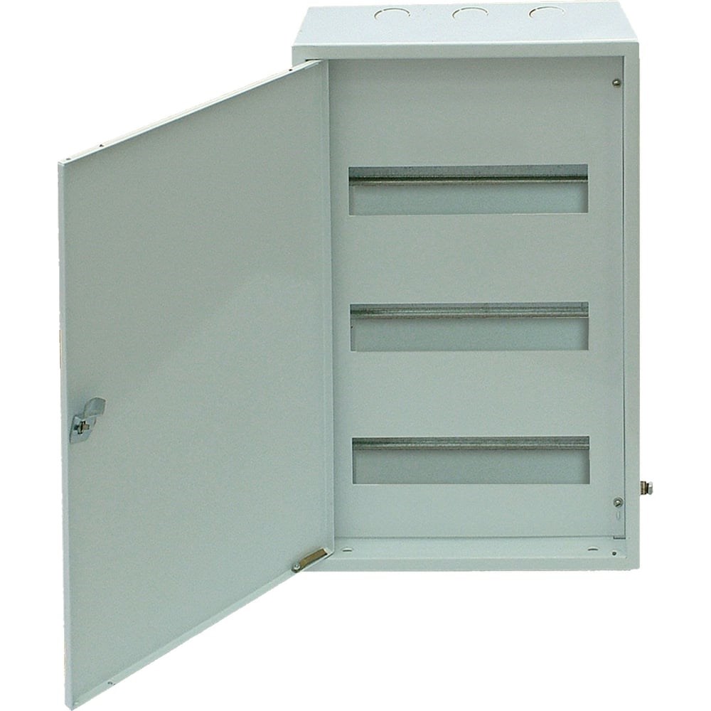 Корпус УЗОЛА ЩРН 3-3x12-УХЛ4 ЯЯС08458 с цельнометаллической дверкой, 24 модуля, уличное исполнение. Отличительной особенностью корпусов распределения является применение омедненных шпилек вместо болтов в узлах заземления. Комплектуются фальш-панелью, DIN-рейками, а также шинами N и PE. Степень защиты корпусов не менее IP31, а при открытой дверце IP 20 это позволяет устанавливать щиты в местах, доступных неквалифицированному персоналу. Окраска RAL 7035.