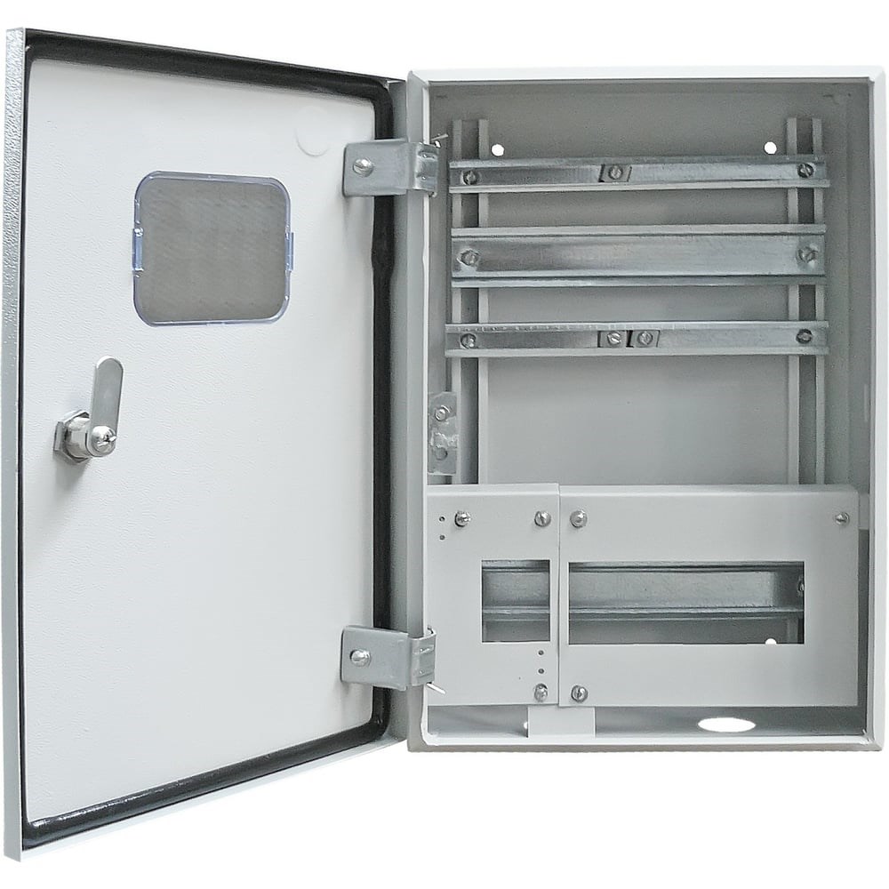 Корпус УЗОЛА ЩУНс 1х7+1х2-СЭ1-IP54-У1-013 U01250912 с цельнометаллической дверкой, под электронный счетчик с окошком, до 7+2 модулей. Корпус окрашивается порошковой краской уличного исполнения У1, дверцы корпусов могут быть как цельнометаллическими, так и с прозрачным элементом, что позволяет снимать показания со счетчика не прибегая к открыванию дверцы. В щитке ЩУНс 1х7+1х2-СЭ1-IP54-У1-013 U01250912 внутри установлена регулируемая по высоте дин-рейка и направляющие для установки любых типов электронных однофазных счетчиков СЭ1. Даже могут быть установлены дин-реечные счетчики СЭ3. Нижние распределительные отсеки на 7+2 модулей имеют отверстия для пломбировки. Все щитки имеют одинаковый ключ с секретом, для обслуживания одним электриком. Применяется для учета и распределения электроэнергии в котеджных поселках, возможно установка на трубостойку или квадратный столб с комплектом крепления. Для крепления на квадратный столб можно отдельно заказать хомут - УЗОЛА Хомут на столб 300х220мм U00090000.