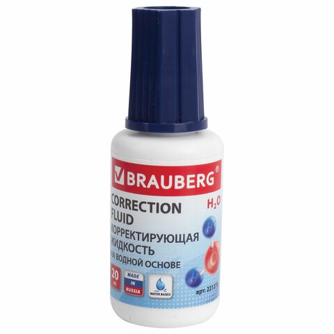 Корректирующая жидкость BRAUBERG на водной основе, 20 мл, с кисточкой, 221270