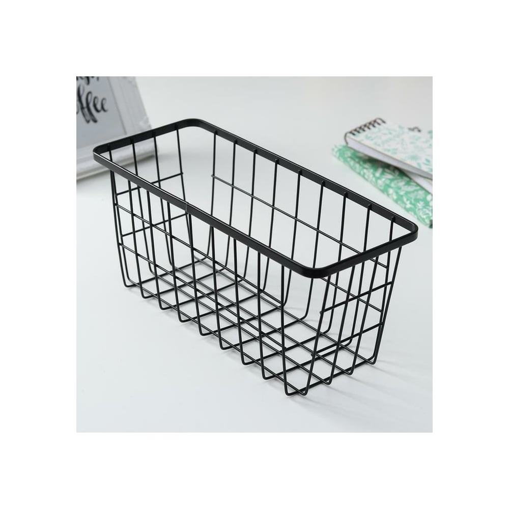 Корзинка для мелочей Доляна 13х29х11,5, черный 5168786 предназначена для хранения и переноса различных вещей и аксессуаров. Легко моется, за счет чего не требует сложного ухода. Имеет высокую прочность, поэтому прослужит долгое время. Благодаря сетчатой структуре корзинка хорошо вентилируется.