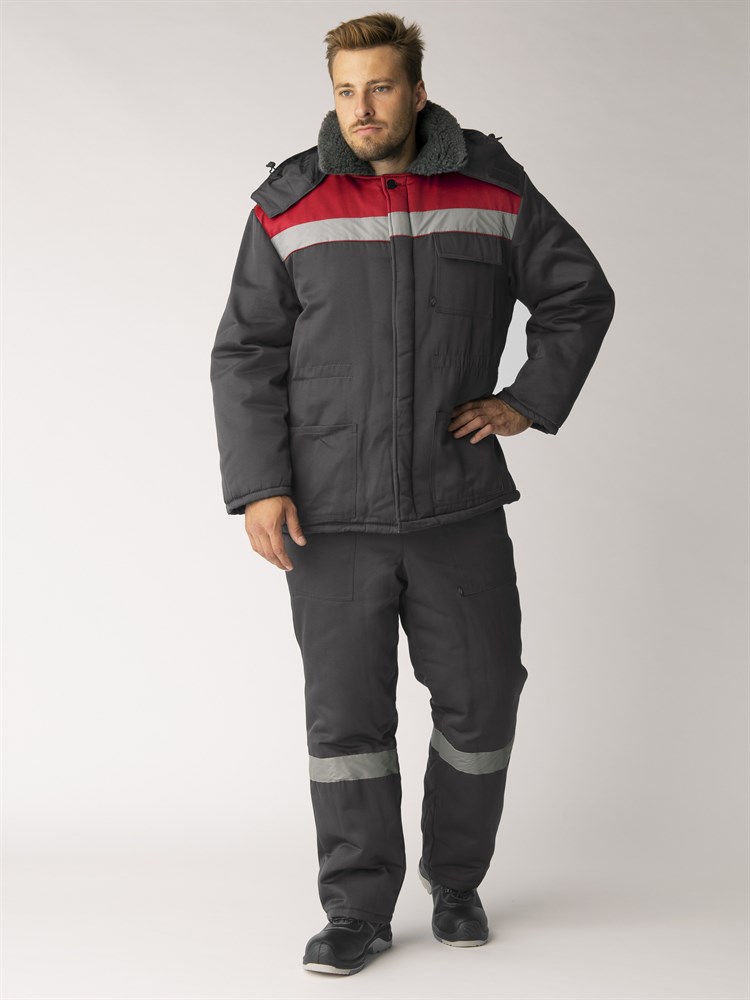 Костюм зимний Труженик-Ультра-1 СОП (тк.Смесовая,210) брюки, т.серый/красный