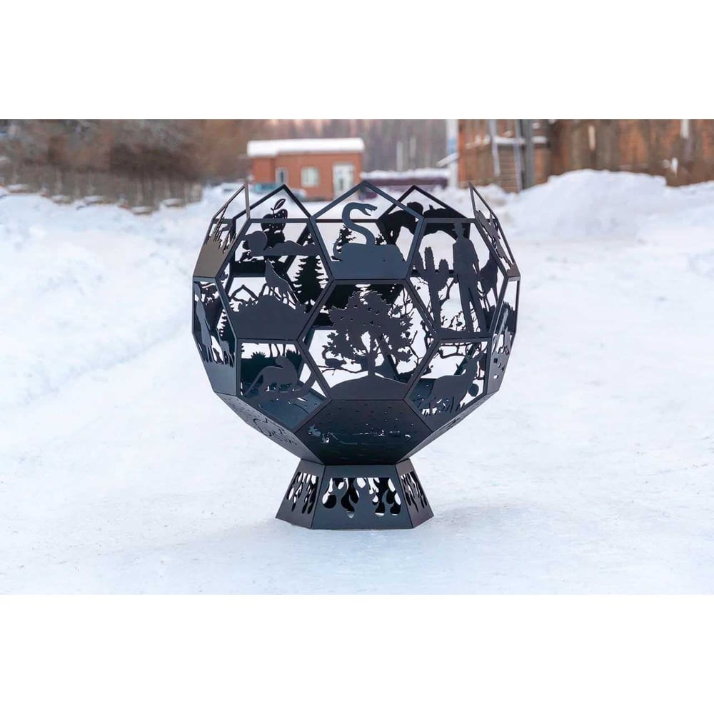 Чаша изготовлена из качественной стали толщиной 3 мм. Поверхность обработана термоустойчивой краской, которая продлевает срок службы конструкции. Высоко детализированный рисунок сделан на современном лазерном оборудовании. Широкие ножки обеспечивают максимальную устойчивость на газоне. Аксессуары к костровому очагу приобретаются отдельно, в комплект не входят.