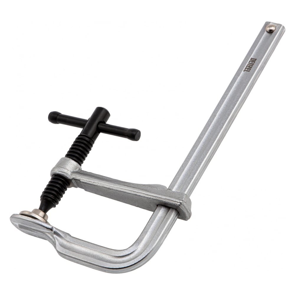 Кованая F-образная струбцина Denzel 20466 с глубиной зажима 80 мм, усиленная, предназначена для фиксации деталей шириной до 300 мм и материалов при проведении слесарных, столярных и сварочных работ. Тавровый профиль обеспечивает устойчивость конструкции к изгибу, что позволяет фиксировать детали со значительным усилием. Струбцина , подходит для профессионального применения.
