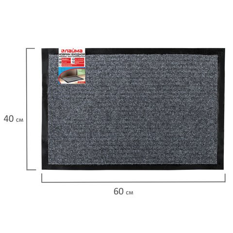 Коврик входной ворсовый влаго-грязезащитный 40х60 см, толщина 7 мм, ребристый, серый, LAIMA, 602861