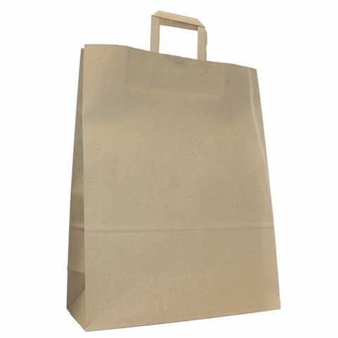Крафт-пакет бумажный 24х14х29 см, плоские ручки, плотность 90 г/м2, 110517