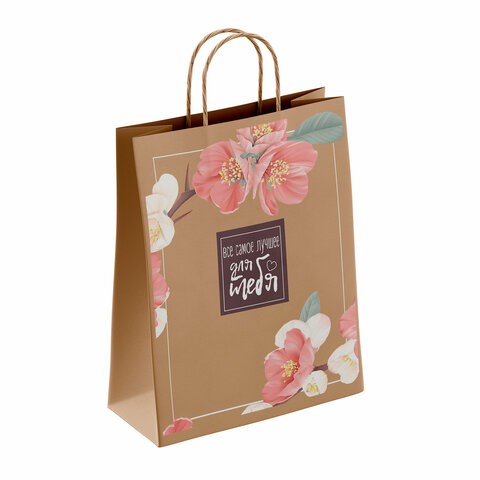 Оригинальный цветочный дизайн создает атмосферу праздника и поднимает настроение. Такой пакет не только стильно выглядит, но и является экологичным, что привлекает тех, кто ценит натуральные материалы.