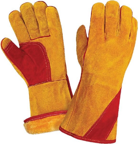 Краги спилковые утепленные (иск.мех) желтые с красным усилением нить Кевлар