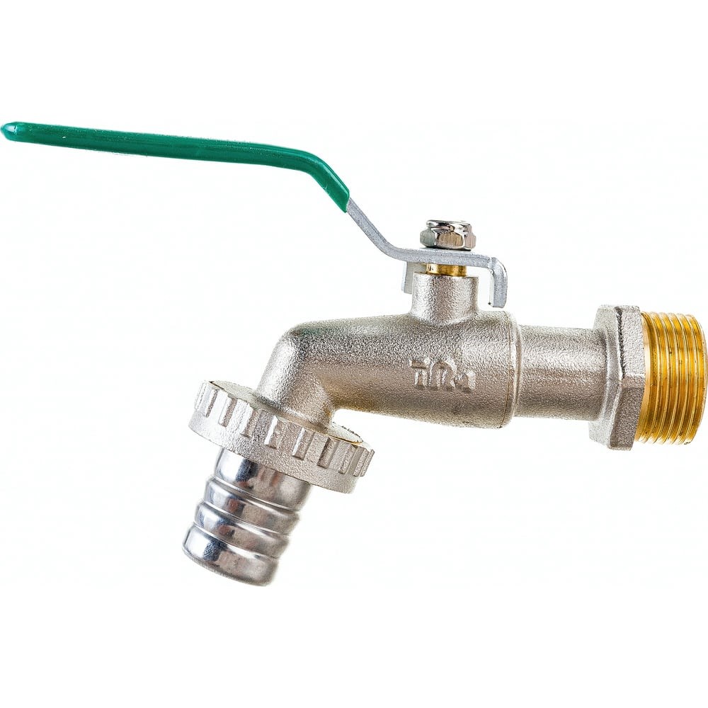 Кран шаровый водоразборный используется в водопроводных системах холодного, в том числе питьевого, водоснабжения, а также в системах горячего водоснабжения с температурой воды до +80ºС. Рабочее давление - 8 бар. Кран может применяться на технологических трубопроводах, транспортирующих жидкости неагрессивные к материалам крана. На кране в районе излива крепится штуцер, с помощью которого происходит соединение со шлангом. В корпусе крана на выходе потока среды встроен пластиковый рассекатель, концентрирующий струю. Резьба на 3/4", диаметр штуцера - 20 мм.