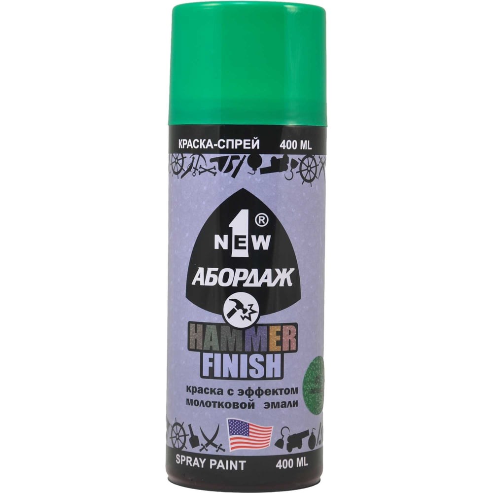 КРАСКА-СПРЕЙ 1NEW® АБОРДАЖ® C ЭФФЕКТОМ МОЛОТКОВОЙ ЭМАЛИ - высококачественная акриловая быстросохнущая универсальная краска, которая может применяться для полной окраски, подкрашивания, ремонта и художественного оформления практически любых поверхностей: металлических, деревянных, бетонных, каменных, большинства пластиков и т.д. Отличается повышенной прочностью к механическим повреждениям и ржавчине. Обладает отличной укрывистостью и низким расходом. Дает стойкие и яркие цвета, качественную поверхность. Пригодна для внутренних и внешних работ. После высыхания не токсична.