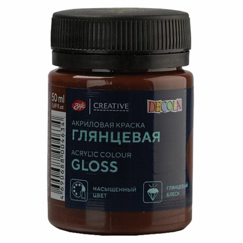 Краска акриловая глянцевая "Декола", банка 50 мл, коричневая, Невская Палитра, 2928419
