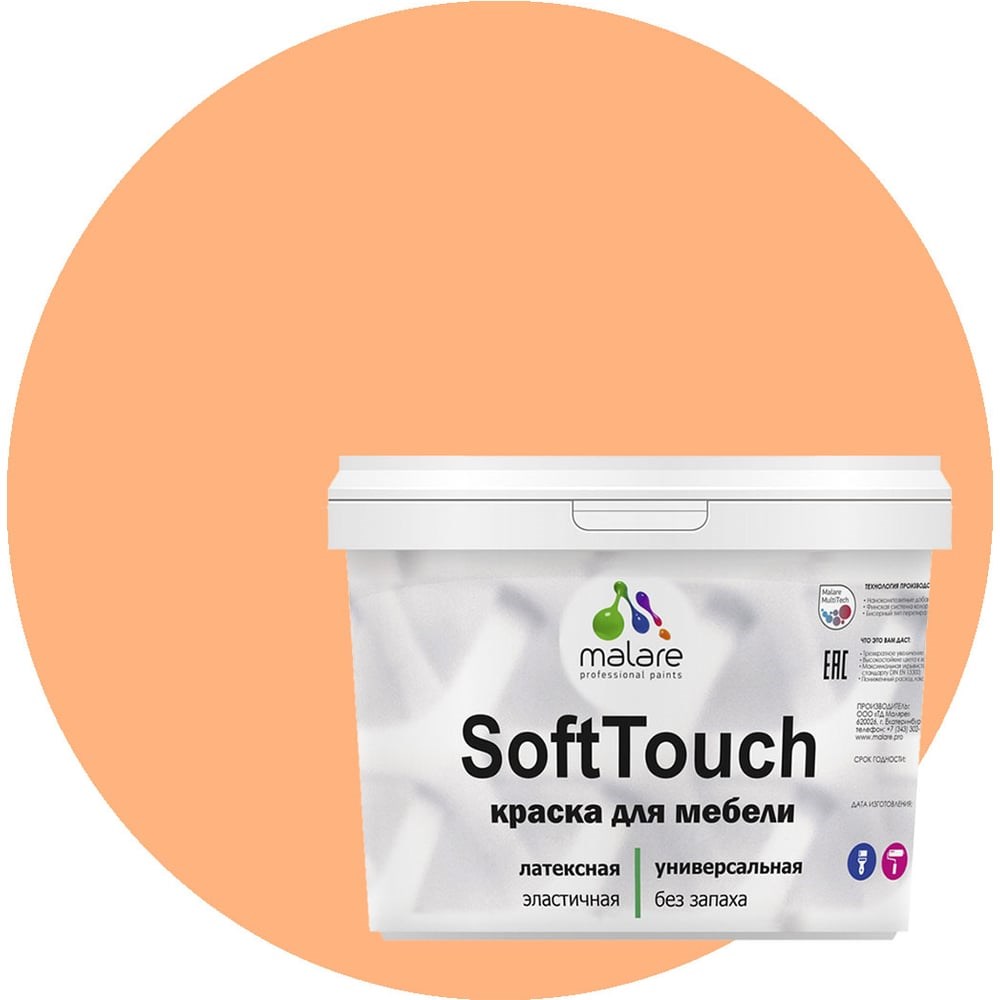 Краска для мебели, кухонных фасадов MALARE SoftTouch матовая, свежая охра, 10 кг 2036752085932 предназначена для защитно-декоративного окрашивания любых деревянных, минеральных и металлических поверхностей, как фасадных, так и интерьерных. Обладает высокой износостойкостью и экономичностью. Материал пожаро- и взрывобезопасен. Не смешивать с другими красками и органическими растворителями. Рекомендована для окрашивания: мебели кровель и цоколей фасадов и интерьеров любых деревянных изделий