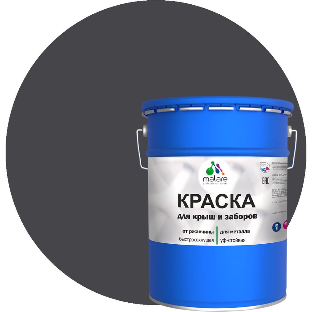 Краска Malare для металлического забора, металлических крыш и металлочерепицы — быстросохнущая краска для окрашивания металлических поверхностей, в том числе со следами коррозии. Представляет собой суспензию пигментов и наполнителей в растворе полиакриловой смолы с добавлением антикоррозионных пигментов и функциональных добавок. Совмещает в себе свойства преобразователя ржавчины, антикоррозионной грунтовки и финишного эмалевого покрытия. Область применения: Данная краска применяется для комплексной атмосферостойкой антикоррозионной защиты черных металлов (железо и сплавы на его основе). Является самостоятельным антикоррозионным покрытием для металлических поверхностей, подвергающихся атмосферным воздействиям и для окраски внутри помещений. Обеспечивает надёжную антикоррозионную защиту: • Металлоконструкций промышленного назначения; • Заборов, ворот; • Специализированного оборудования; • Спецтехники; • Вентиляционных элементов; • Труб и трубопроводов; • Железобетонных конструкций; • Крыш, деталей кровли; • Иных металлических изделий и деталей. *Согласно методу ускоренного атмосферного воздействия. Покрытие, состоящее из трёх слоёв эмали, нанесённых на подготовленную поверхность, в умеренном и холодном климате сохраняет защитные свойства 10-12 лет. Плёнка краски сочетает достаточную твёрдость с высокой эластичностью и долговечностью, устойчива к изменению температуры от — 50 до + 60 ºС.