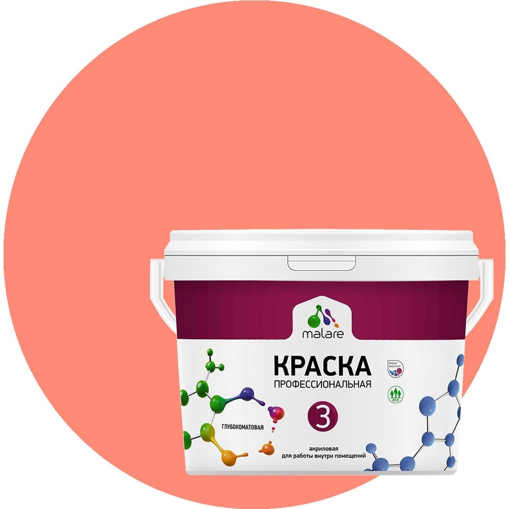 Краска MALARE Евро 3 для обоев, стен и потолков, коралловый, 2.7 л 2036769857324 предназначена для окраски стен, потолков и обоев в сухих жилых помещениях, в том числе детских комнатах, коридорах, кухнях, спальнях, гостиных комнатах, офисных помещениях, складских помещениях и т. д. Типы обрабатываемых поверхностей: Минеральные подложки: бетонные, кирпичные, монолитные и оштукатуренные поверхности, гипсокартонные и гипсоволокнистые плиты. Деревянные подложки: древесина, древесностружечные и древесноволокнистые плиты. Другие подложки: бумага, обои под окраску. Способ применения: Очистить поверхность от грязи и пыли, следов старого покрытия. Неровности зашпатлевать. Для формирования качественного и долговечного покрытия рекомендуют произвести грунтование поверхности в 1-2 слоя акриловой грунтовкой. Температура воздуха не ниже +5 градусов и относительная влажность не выше 80 %. Краску перемешать, при необходимости, разбавить водой не более 10% от объема. Благодаря составу, продукт равномерно распределяется по поверхности при помощи кисти, валика или краскопульта и образует матовое износостойкое покрытие, устойчивое к многократному мытью с применением мягких моющих средств.
