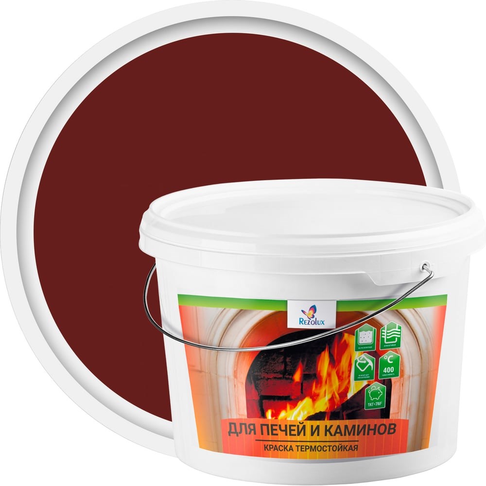 Краска для печей и каминов Резолюкс 0,9 кг красно-коричневый