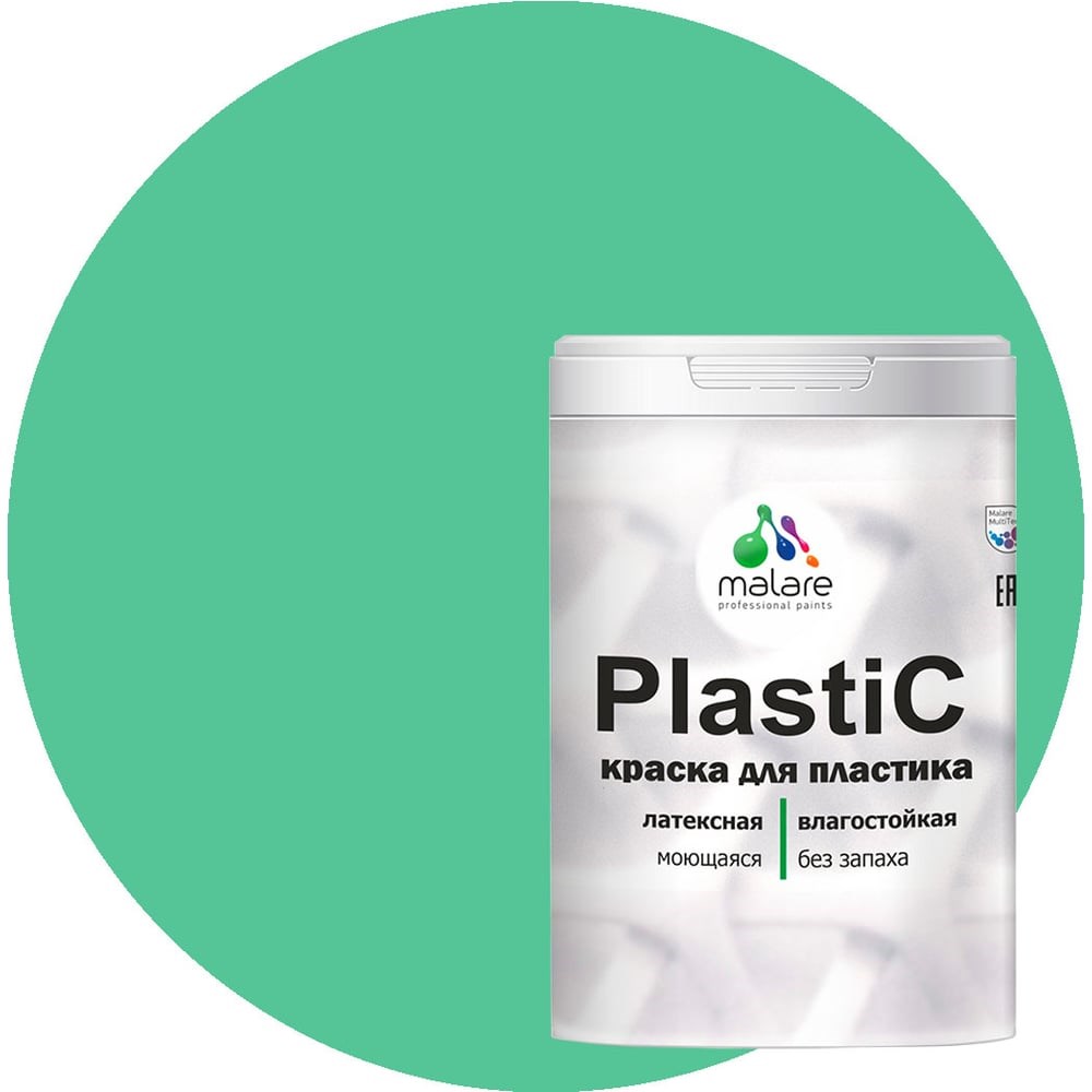 Краска MALARE PlastiC для пластика, сайдинга, ПВХ, матовая, снежная мята, 1 кг 2036752155987 - это специализированная резиновая краска на акриловой основе подходит для обработки: пластика, подоконников, откосов, стекла, ПВХ, ЛДСП, стен и всех типов обоев (в том числе и флизелиновых). Служит для внутренних и наружных работ. Благодаря составу, продукт образует покрытие, устойчивое к многократному мытью с применением бытовых не абразивных моющих средств. Обладает экономичностью и высокими эксплуатационными характеристиками, такими как износостойкость (1 класс стойкости к истиранию по стандарту ISO 11998 / DIN EN 13 300). Сертифицирована для использования в детских и медицинских учреждениях.