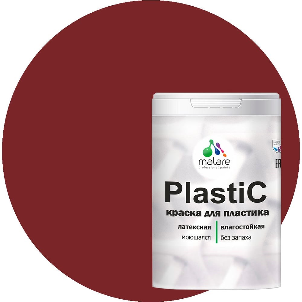 Краска MALARE PlastiC для пластика, сайдинга, ПВХ, матовая, багровый агат, 1 кг 2036771856254 - это специализированная резиновая краска на акриловой основе подходит для обработки: пластика, подоконников, откосов, стекла, ПВХ, ЛДСП, стен и всех типов обоев (в том числе и флизелиновых). Служит для внутренних и наружных работ. Благодаря составу, продукт образует покрытие, устойчивое к многократному мытью с применением бытовых не абразивных моющих средств. Обладает экономичностью и высокими эксплуатационными характеристиками, такими как износостойкость (1 класс стойкости к истиранию по стандарту ISO 11998 / DIN EN 13 300). Сертифицирована для использования в детских и медицинских учреждениях.