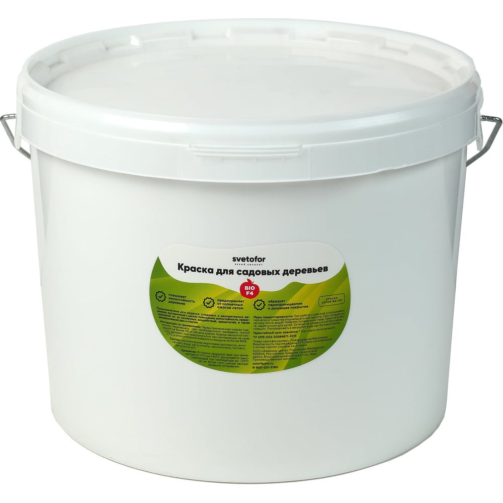 Краска Светофор F4 для садовых деревьев Супербелая 14 кг ЗОР00009195 содержит антисептические добавки, что обеспечивает защиту дерева от гниения и паразитов. Продукт обладает отличной укрывной способностью. Созданное покрытие показывает устойчивость к негативному влиянию атмосферных явлений.