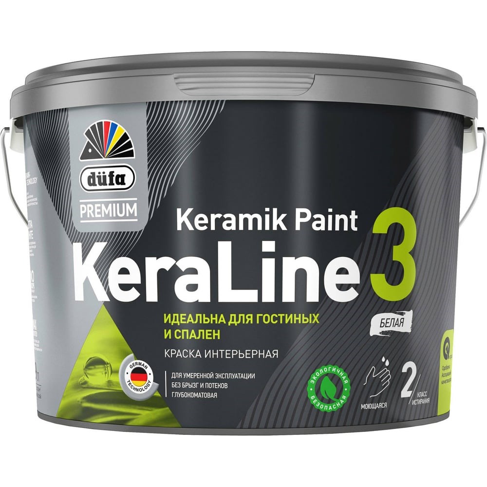 Краска Dufa Premium ВД KeraLine 3, база 3, 2,5 л МП00-006516 предназначена для декоративного окрашивания поверхностей внутри помещений с умеренным уровнем влажности (стены и потолок в спальне, гостиной, кабинете, кладовке, столовой или раздевалке). Быстросохнущий состав обладает хорошей адгезией к большинству строительных материалов: дерево, ДСП, бетон, кирпич, штукатурка, гипсокартон. Продукт широко используют во время интерьерных работ в детских и лечебно-профилактических учреждениях. Краска образует равномерное покрытие, устойчивое к мытью поролоновой губкой с применением мягких чистящих средств.