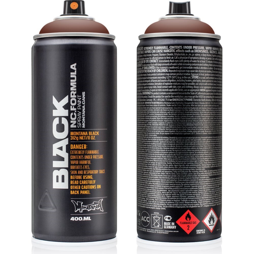 Краска MONTANA BLACK сладкий каштан, 0.4 л 1080 BLK на основе нитрокомбинации с высоким давлением. Благодаря составу, продукт можно наносить на любые предварительно обработанные поверхности: деревянные, металлические, пластиковые, минеральные, стеклянные, керамические и т.д. Краска служит для внутренних и наружных работ. Быстросохнущее средство обеспечивает моментальное повторное применение и перекрывание предыдущего слоя. Состав легко и равномерно распределяется по поверхности, образуя атмосферостойкое, матовое покрытие. Превосходный контроль работы клапана позволяет качественно, быстро и без подтеков создавать линии любой сложности (ширина распыления от 1 см до 30 см). Идеальный инструмент для художников уличного искусства и граффити. Внимание! Перед использованием удалить защитное кольцо, расположенное под аэрозольной насадкой (КЭП).