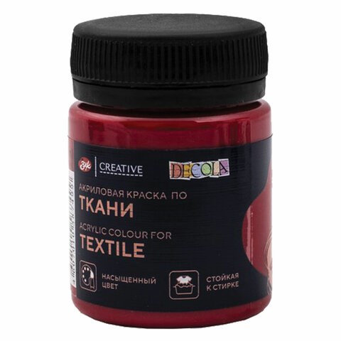 Краска по ткани акриловая "Декола", банка 50 мл, карминовая, Невская Палитра, 4128319