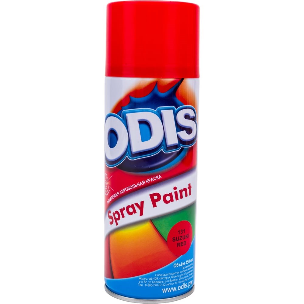 Краска-спрей ODIS сузуки красный 131 - высококачественная акриловая аэрозольная эмаль для внутренних и наружных работ. Обладает хорошей укрывистостью, атмосферостойкостью, высокой адгезией. Применяется для окрашивания металлических, деревянных, керамических, бетонных, каменных, стеклянных и большинства пластиковых поверхностей. ODIS – незаменимый помощник в доме, гараже, на даче, применяется на производстве, в оформительских и дизайнерских работах. Вес готового пигмента (масса нетто) 290г , что позволяет одним баллоном окрасить до 2,5 кв.м. в зависимости от цвета, количества слоев и типа обрабатываемой поверхности.