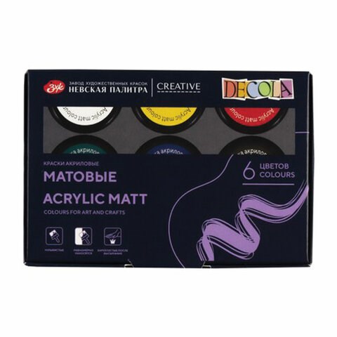 Краски акриловые матовые "Декола", 6 цветов по 20 мл, в банках, Невская Палитра, 143411020