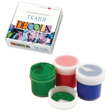 Краски по ткани акриловые "Декола", 9 цветов по 20 мл, в банках, Невская Палитра, 4141111