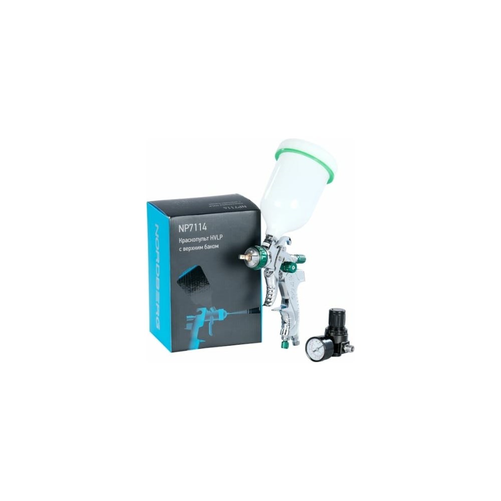 Краскопульт NORDBERG HVLP с верхним баком, сопло 1.4 мм NP7114 предназначен для нанесения лакокрасочных покрытий, в том числе на водной основе. Внимание! Не пригоден для работы с абразивными материалами и составами, содержащими кислоты и бензин.