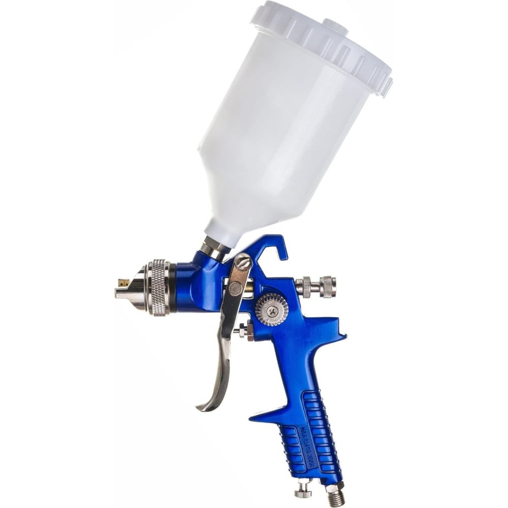 Универсальный краскопульт системы HVLP c верхним бачком. Применяется для нанесения различных лакокрасочных покрытий, таких как 1К базовые краски, покровные лаки, 2К акриловые краски, грунты-порозаполнители, антикоррозийные грунты и т.д. Может применяться для нанесения красок на водной основе. Окрасочные пистолеты данной системы характеризует высокая экономичность и эффективность, обеспечивающая более высокий коэффициент переноса краски (до 75 %). Качественное распыление как следствие, высокий процент переноса лакокрасочных материалов на окрашиваемую поверхность обеспечиваются большим объемом потребления воздуха. Резьба бачка: М16х1.5 внутренняя.