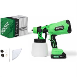 Аккумуляторный краскопульт WORTEN, 1х2 Ач, 120W 0,8л используется для обработки поверхности водно-меловыми и водно-известковыми составами при строительно-отделочных работах, при опрыскивании и побелке садов, дезинфекции помещений. Краскопульт подходит для рабочих поверхностей небольшого и среднего размера. Технология HVLP, реализованная в краскораспылителе, обеспечивает высокую производительность при низком давлении. Подходит для бытового использования в помещениях и на открытом воздухе. Ход курка распылителя регулируется ограничительным винтом, при этом нормируется подача краски. Совместим с аккумуляторами: Makita-type BL-1830, BL-1840, BL-1850, BL-1860 DEKO Type UNV5.0, UNV4.0,UNV3.0,UNV2.0 До 30.06.2026 на данный товар действует условие безусловного возврата.