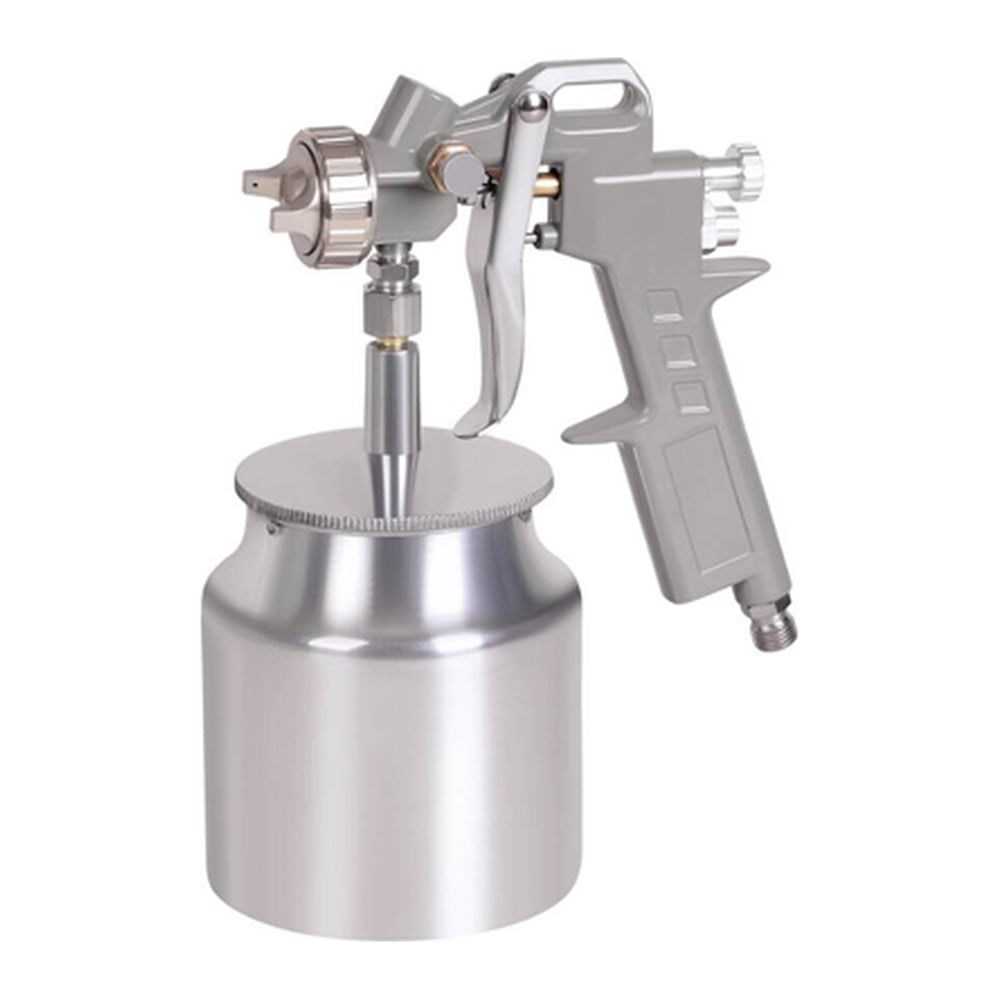 Пневматический краскораспылитель с нижним бачком объемом 0,75 л - это ручной инструмент для качественного и быстрого нанесения лакокрасочных материалов. Устройство оснащено регуляторами подачи краски, пятна распыла и воздуха, для обеспечения равномерного покрытия. Корпус выполнен из алюминиевого сплава, который устойчив к коррозии, а каждая деталь изделия имеет антикоррозионное покрытие. В нижней части пистолета имеется штуцер с наружной резьбой 1/4 дюйма для подключения устройства к компрессору. Основным преимуществом данной модели является быстрое и равномерное нанесение материала , которое существенно облегчает процесс покраски.
