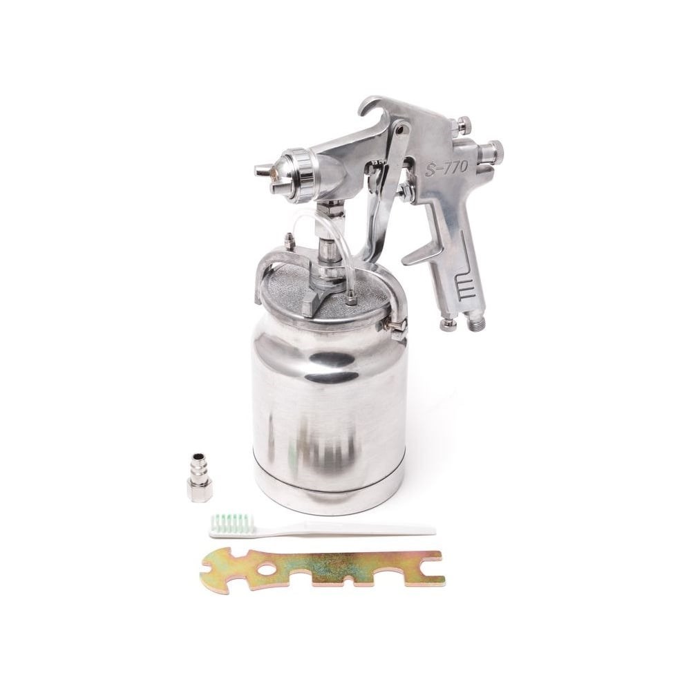 Краскораспылитель с нижним металлическим бачком. Краскопульт – очень удобный инструмент для равномерного и быстрого окрашивания различных поверхностей, поэтому его часто используют в ремонтных работах. Использование краскопульта дает наилучший результат по гладкости покрытия. Технические характеристики: диаметр сопла 1.8 мм; рабочее давление 5 бар; ёмкость бачка 1000 мл; расход воздуха 113-141 л/мин; присоединительная резьба 1/4" - аксессуары для чистки краскопульта в комплекте.