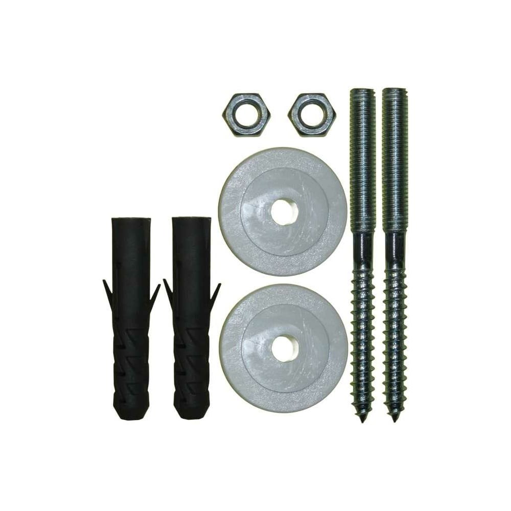 Крепеж тюльпана к стене Сантехкреп 1.3.1.1. состоит из двух дюбелей 12х60 мм, двух сантехнических шпилек 8х100 мм, двух гаек М8 и двух эксцентриковых шайб.