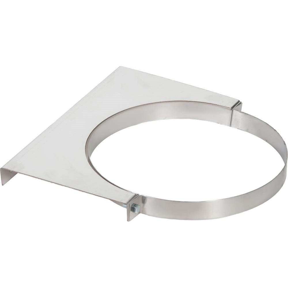 Крепление к стене ФЕНИКС ДЫМОХОДЫ КС 215, 430 1.5 000000479 - это элемент, поддерживающий дымоход в заданном при монтаже положении и обеспечивающий устойчивость при боковых нагрузках. Служит в большей степени для удержания элементов дымохода в вертикальном положении. Не является силовым элементом. Состоит из опорной пластины с монтажными отверстиями для крепления к стене и разборного ленточного хомута, состоящего из двух радиусных элементов с монтажными отверстиями, и болтов с гайками. Опорная пластина жестко закрепляется на стене из негорючего материала. Ленточный хомут охватывает элемент дымохода по наружному диаметру и затягивается посредством болтов и гаек. Передвигая парные гайки, можно смещать дымоход в горизонтальном направлении. Изготовлен из зеркальной нержавеющей стали AISI 430 толщиной 1.5 мм.