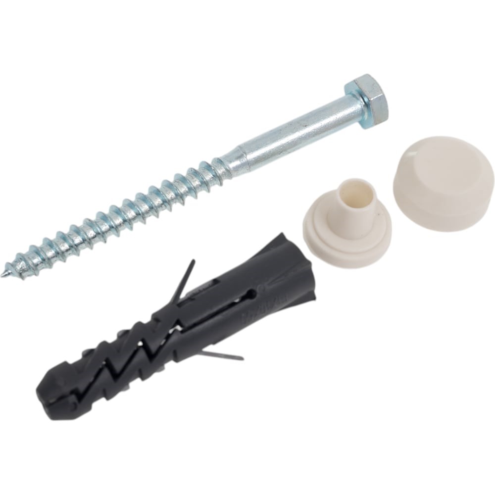 Крепление унитаза к полу в сборе с болтами и заглушками, L 75 мм Предназначен для крепления унитаза. Предназначен для крепления унитаза. Состав: шуруп сантехнический - 2 шт; дюбель нейлоновый - 2 шт; заглушка пластиковая - 2 шт; декоративный пластиковый колпачок - 2 шт.