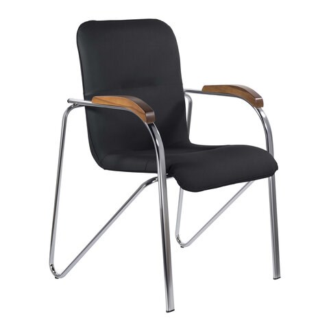 Кресло BRABIX "Samba CF-103", хром каркас, накладки "орех", кожзам черный, собрано, 532756