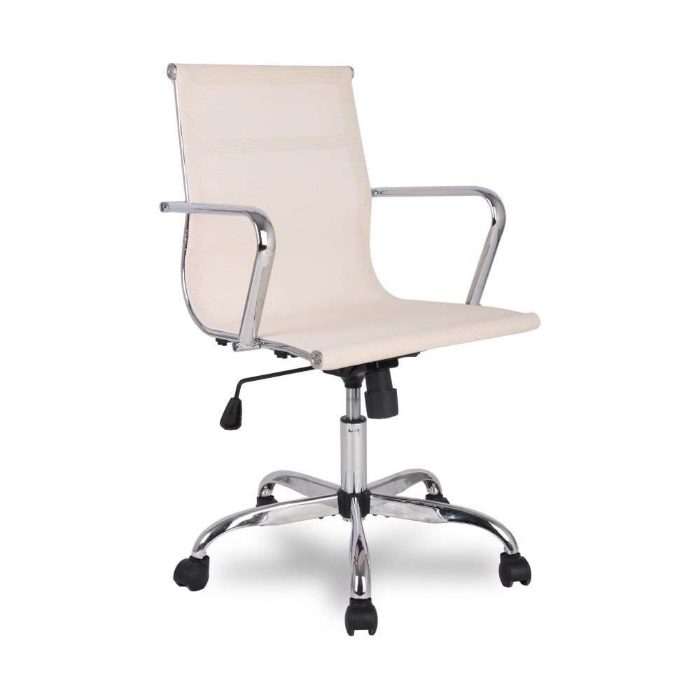 Механизм качания с регулировкой под вес и фиксацией в вертикальном положении. Регулировка высоты (газлифт). Крестовина металлическая хромированная 70 см. Подлокотники хромированные без накладок. Материал обивки: сетчатая ткань. Цвет: бежевый. Ограничение по весу: 120 кг.