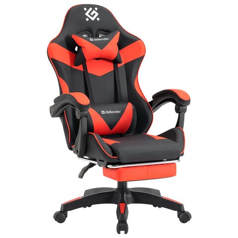 Кресло компьютерное DEFENDER "Tornado", 2 подушки, подставка для ног, экокожа, черное/красное, ш/к 26722, 64057