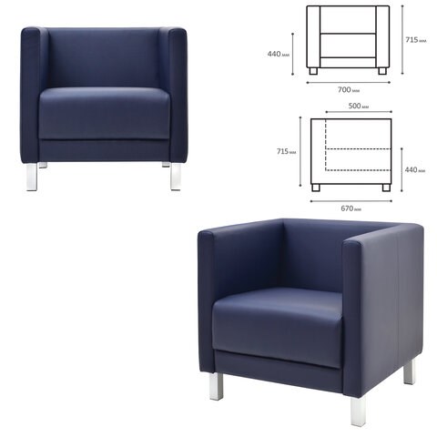 Кресло мягкое "Атланта", "М-01", 700х670х715 мм, c подлокотниками, экокожа, темно-синее