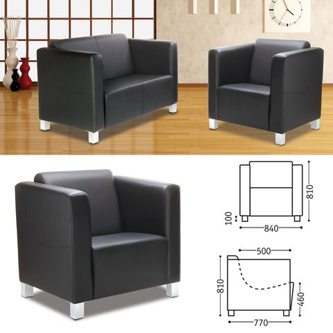 Кресло мягкое "Милано", 810х840х770 мм, c подлокотниками, экокожа, черное