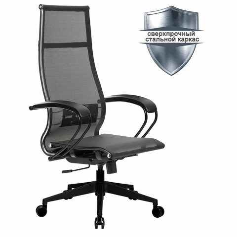 Кресло офисное МЕТТА "К-7" пластик, прочная сетка, сиденье и спинка регулируемые, черное