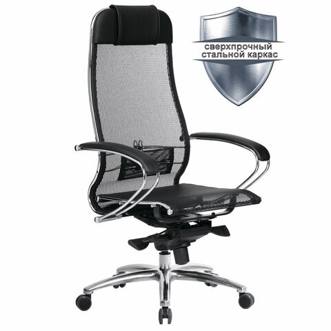 Кресло офисное МЕТТА "SAMURAI" S-1, сверхпрочная ткань-сетка, черное