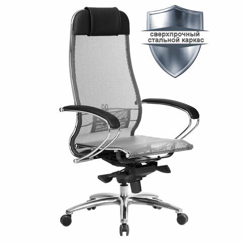 Кресло офисное МЕТТА "SAMURAI" S-1, сверхпрочная ткань-сетка, серое