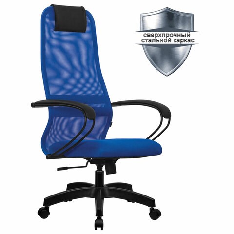 Кресло офисное МЕТТА "SU-B-8" пластик, ткань-сетка, сиденье мягкое, синее